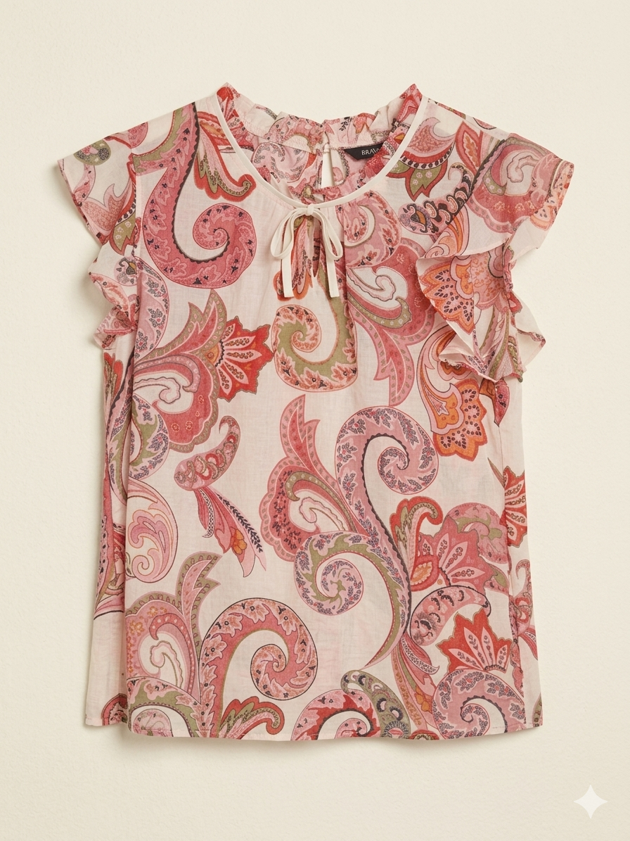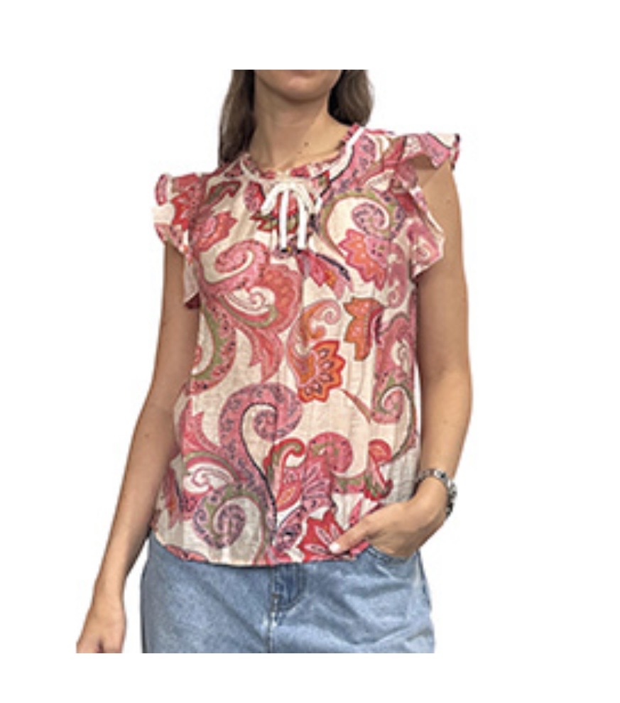 Camisa rosa estampada Brave Soul,manga volante y lazo.