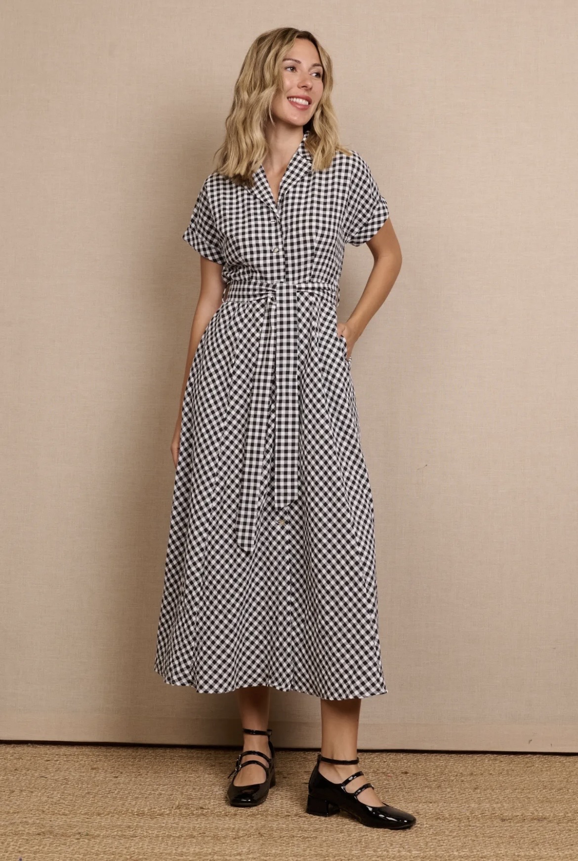 Vestido cuadros vichy,negro y blanco.Camisero.Midi.Con cinturon del mismo tejido.Con bolsillos